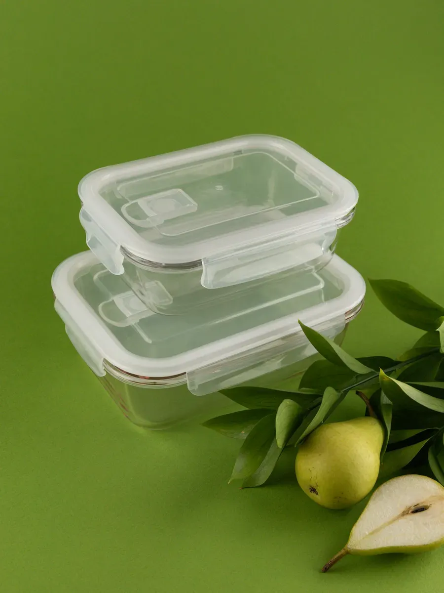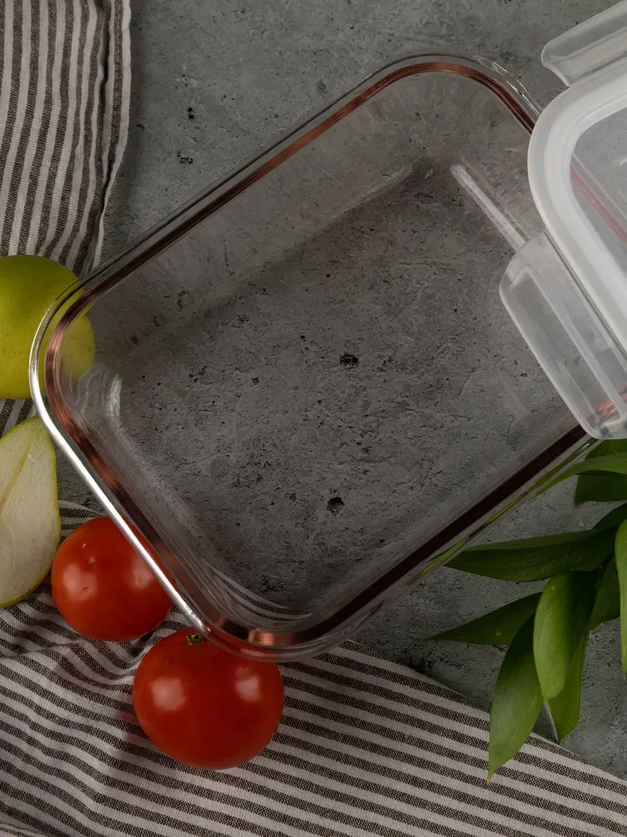 Стильный дизайн: Прямоугольная форма и прозрачное стекло не только практичны, но и эстетически привлекательны. Размещайте контейнеры в холодильнике или на столе, радуя глаз своей аккуратностью.