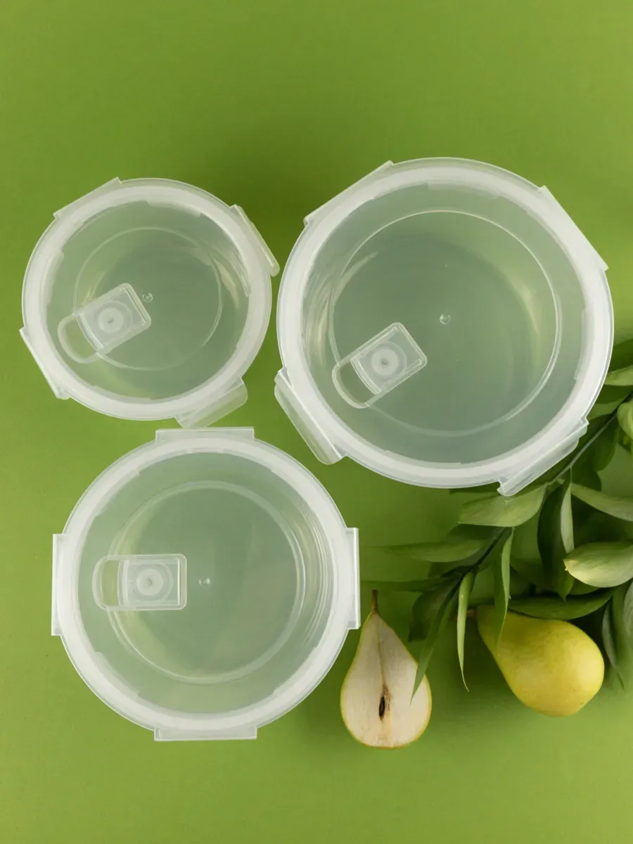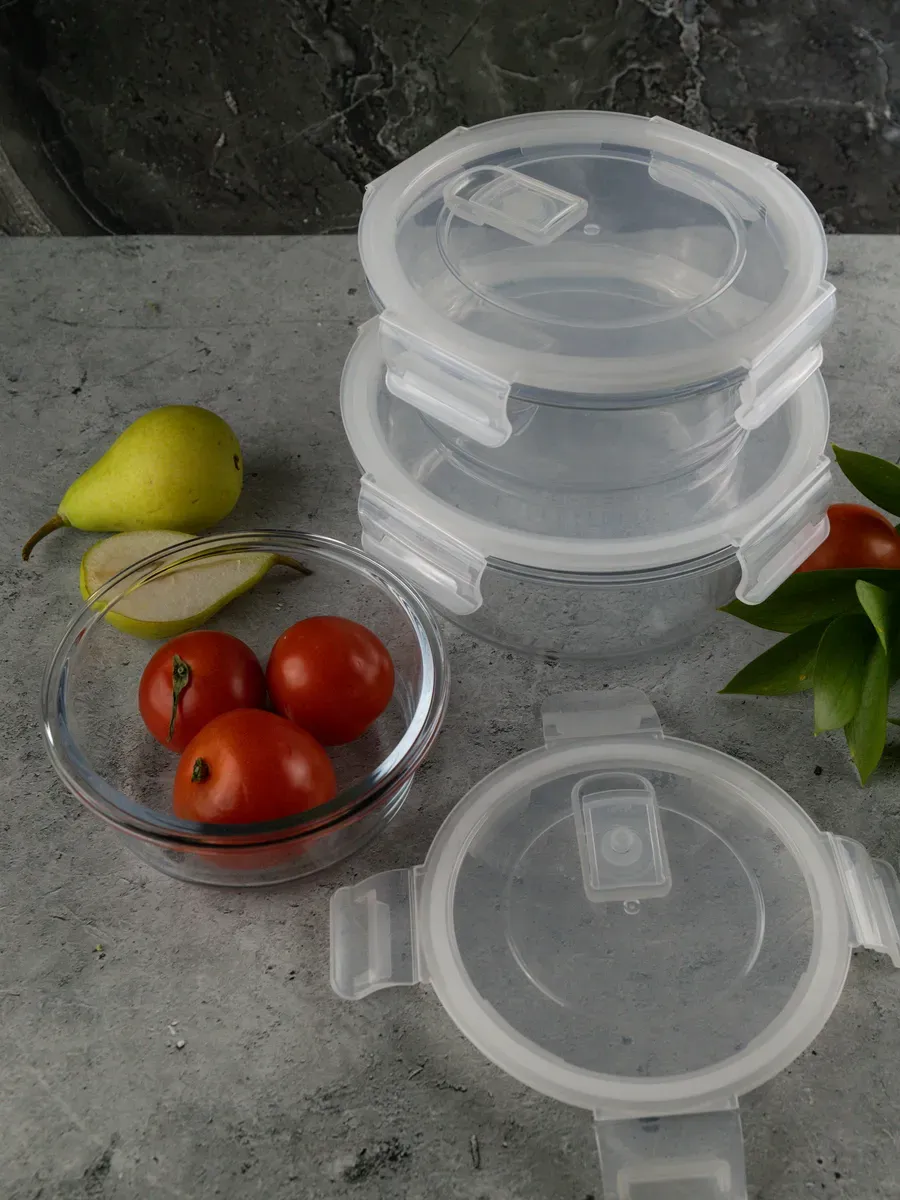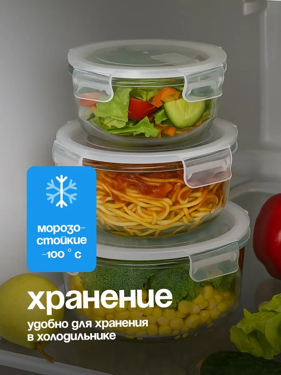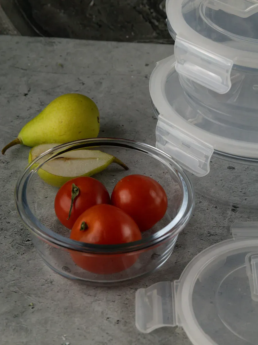 Набор стеклянных контейнеров для еды и хранения от бренда Нерпочка — это надежное решение для вашей кухни, сочетающее уют и практичность. В комплект входят три высокопрочных стеклянных контейнера: объемом по 325 мл., 600 мл и 800 мл, а также три герметичные пластиковые крышки с защелками, обеспечивающие надежную герметизацию.