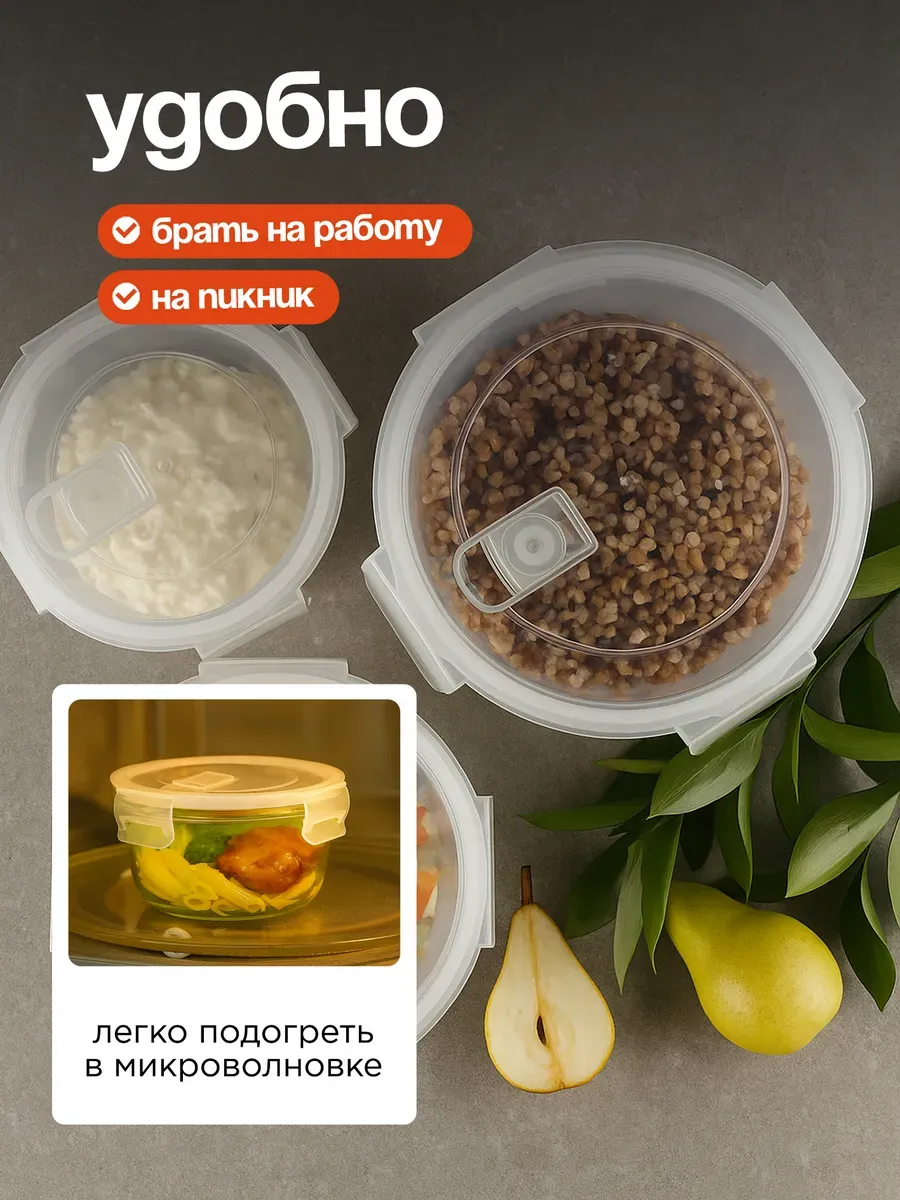 Набор стеклянных контейнеров для еды и хранения от бренда Нерпочка — это надежное решение для вашей кухни, сочетающее уют и практичность. В комплект входят три высокопрочных стеклянных контейнера: два объемом по 325 мл и один объемом 600 мл, а также три герметичные пластиковые крышки с защелками, обеспечивающие надежную герметизацию. Особенности товара: Прочные и безопасные материалы: высокопрочное стекло, устойчивое к температурам. Герметичные крышки с защелками и клапанами для сохранения свежести продуктов. Можно мыть в посудомоечной машине, использовать в микроволновой печи и морозильной камере. Удобные и вместительные формы идеально подходят для хранения как жидких, так и сыпучих продуктов. Жаропрочная посуда позволяет использовать контейнеры для разогрева пищи без переноса в другую емкость. Этот набор станет незаменимым помощником в организации хранения продуктов, обеспечивая их безопасность и свежесть. Бренд Нерпочка — это гарантия уюта и надежности вашей кухни