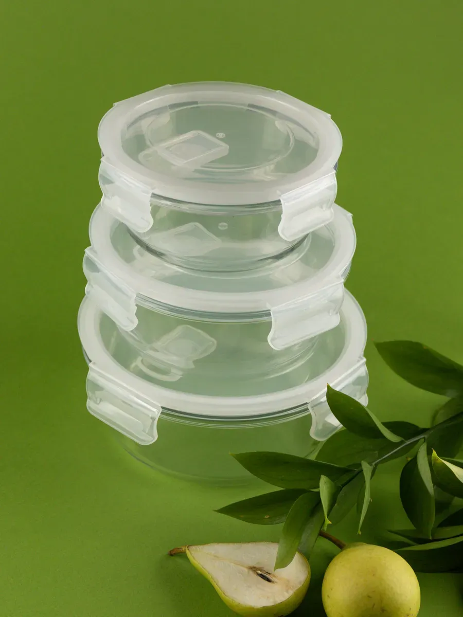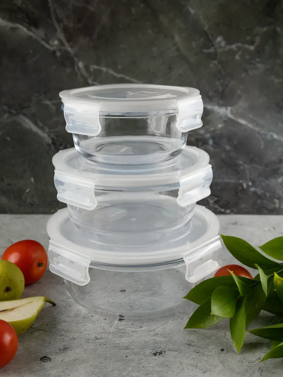 Контейнеры для еды стеклянные, 3 шт, круглые – идеальный выбор для хранения и транспортировки продуктов. В комплект входят два контейнера объемом 600 мл и один контейнер 880 мл, что обеспечивает разнообразие для ваших нужд. Каждый контейнер выполнен из высокопрочного стекла, что гарантирует долговечность и безопасность использования. Герметичные крышки с защелками надежно сохраняют свежесть и ароматы ваших блюд. Контейнеры можно легко мыть в посудомоечной машине, а также использовать в микроволновой печи и морозильной камере. Они отлично подходят для хранения как готовой еды, так и сыпучих продуктов, благодаря своей вместимости и удобной форме. Бренд Нерпочка олицетворяет уют и надежность, что отражается в каждом продукте. Наполните свои дни комфортом с нашими стеклянными контейнерами