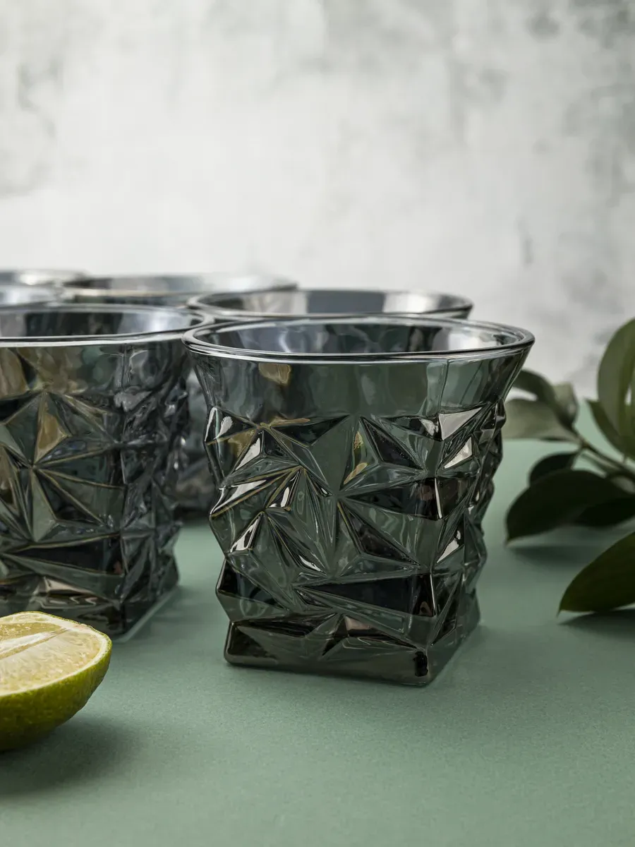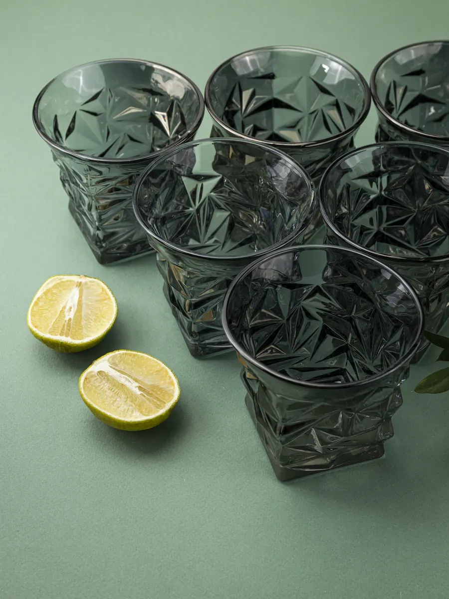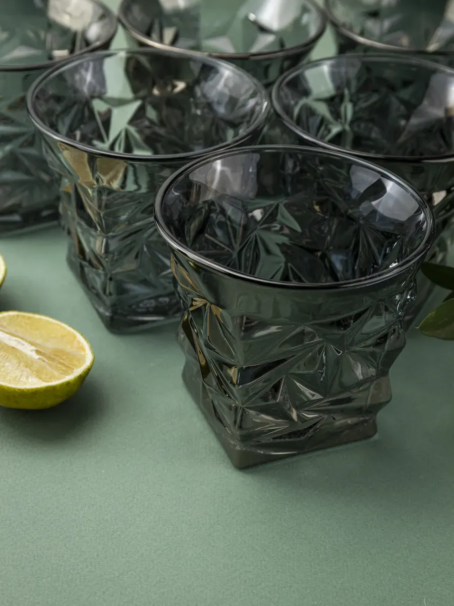 Набор из 6 стаканов от бренда "Нерпочка" в стиле кристаллов — это настоящее искусство элегантности и стиля. Объем каждого бокала — 300 мл, а глубокий черный цвет придают им особую изысканность. Их необычная форма напоминает драгоценные кристаллы, а высококачественное стекло сохраняет чистоту вкуса напитков и не впитывает запахи. Эти бокалы отлично подчеркнут торжественную атмосферу вашего дома или станут стильным подарком для ценителей изысканных деталей. Идеально подойдут для воды. сока или других напитков