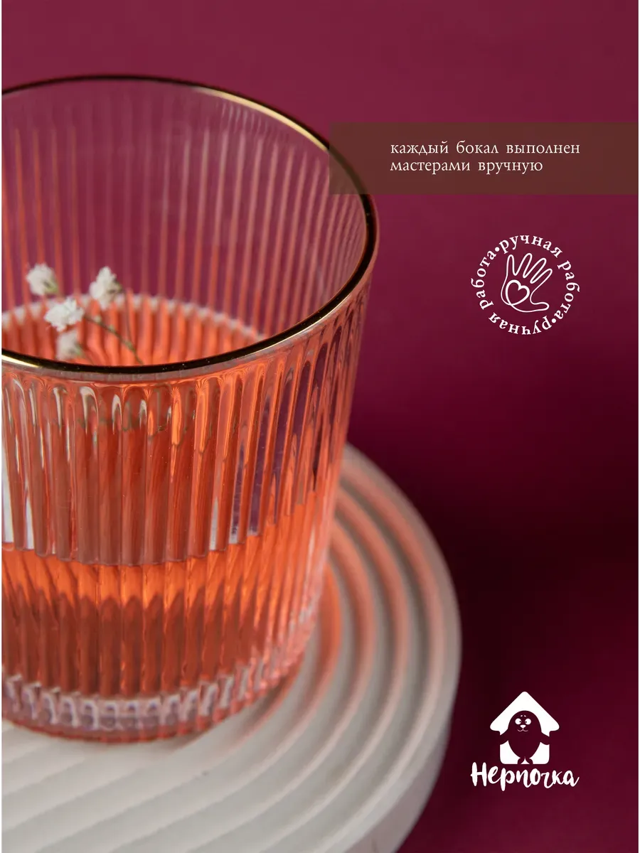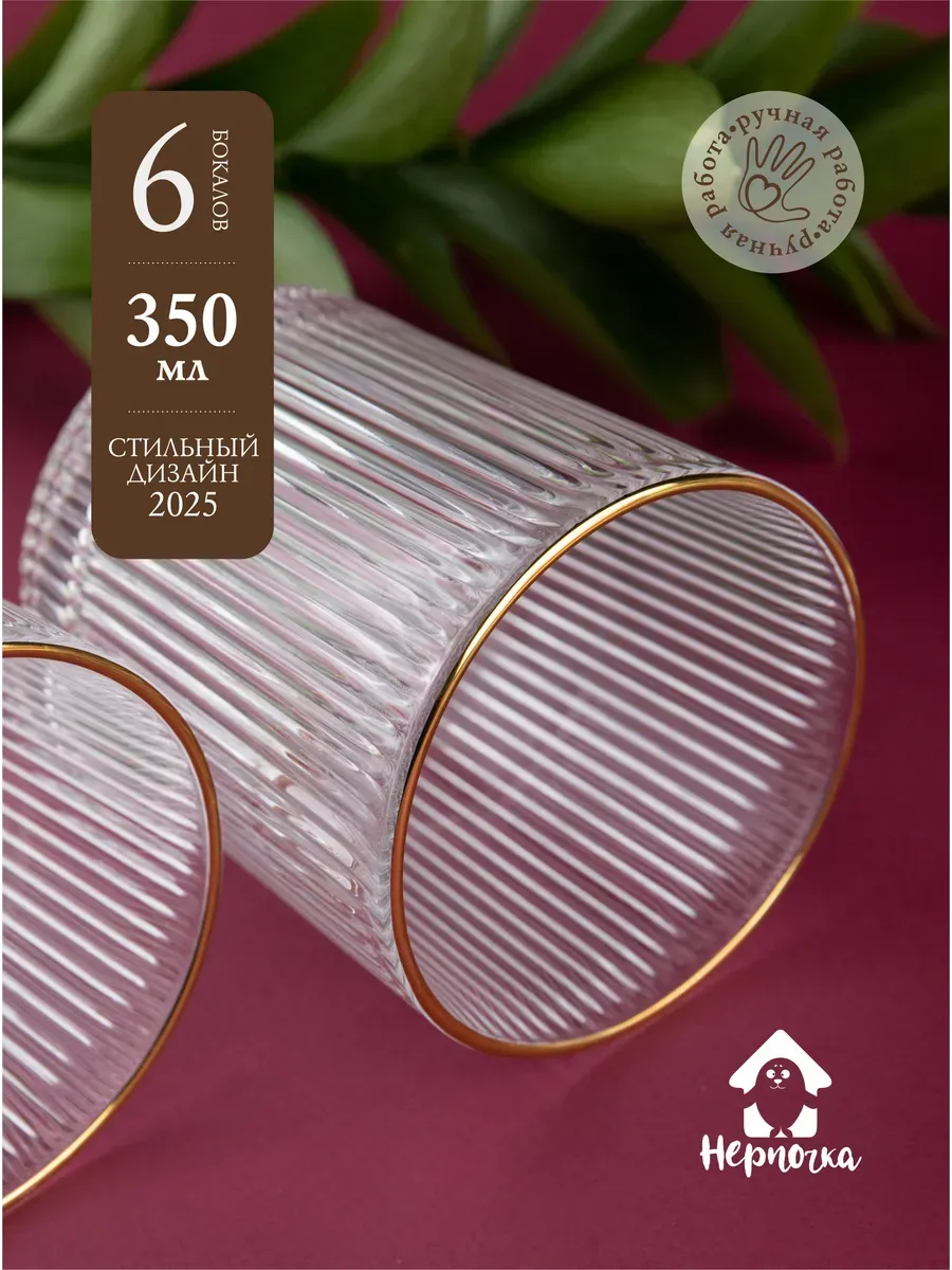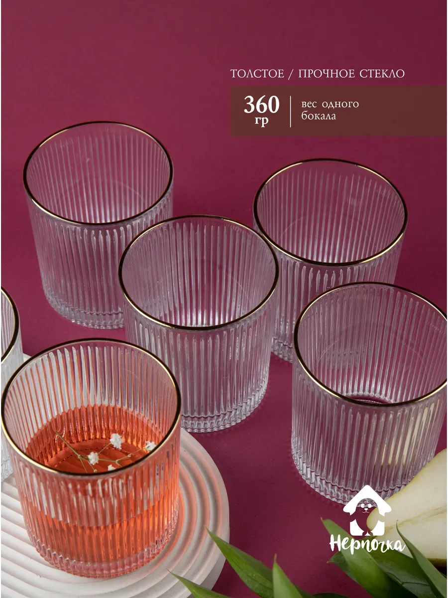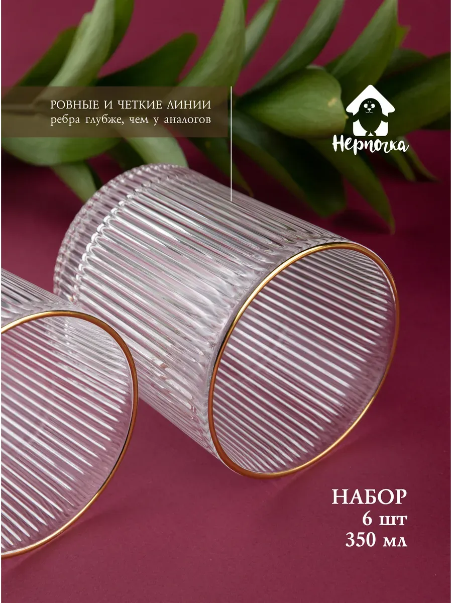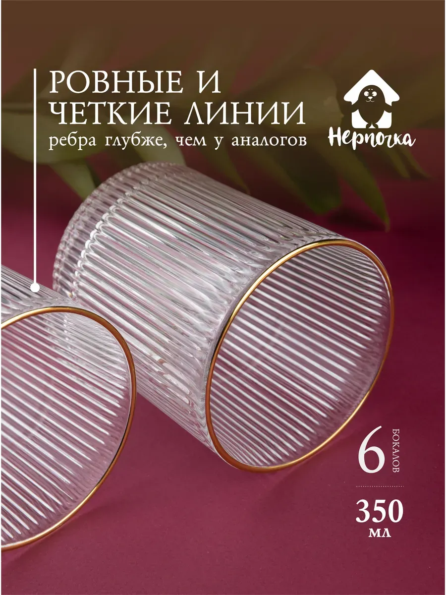 Набор бокалов "Нерпочка" - это стильное и практичное решение для сервировки стола. В комплект входит 6 рифленных бокалов объемом 350 мл, выполненных из прозрачного толстого стекла с изящной золотой каймой. Каждый бокал сделан вручную, линии утоплены глубоко, ровные, четкие. Благодаря ребристой поверхности бокалы удобно держать в руке, а прозрачное стекло подчеркивает красоту напитков. Универсальный дизайн бокалов позволяет использовать их для подачи различных напитков, таких как виски, вода, сок и другие. Набор станет прекрасным дополнением к любому домашнему бару или праздничному столу, придав ему элегантный и утонченный вид. Изготовленные из высококачественного стекла, бокалы не впитывают запахи и легко моются, что обеспечивает их долговечность и удобство в использовании.