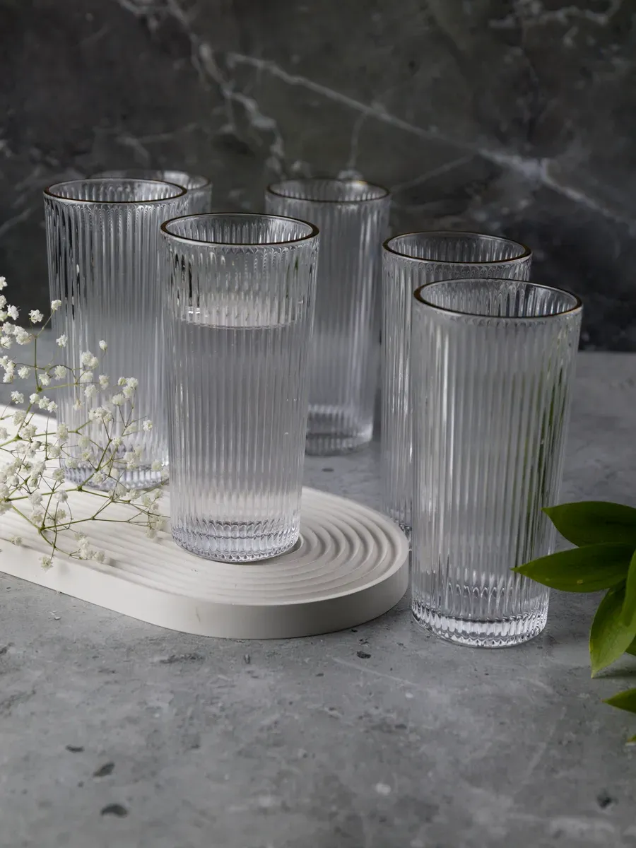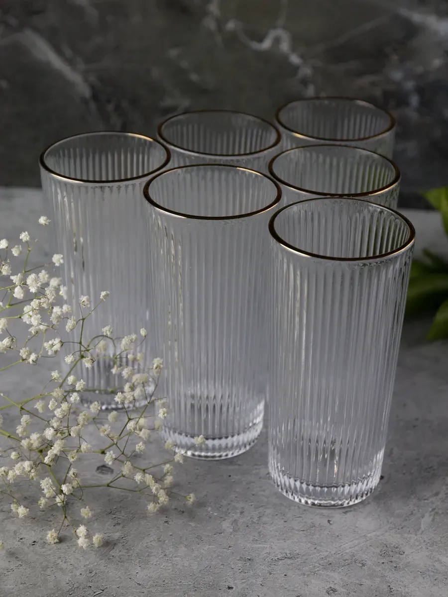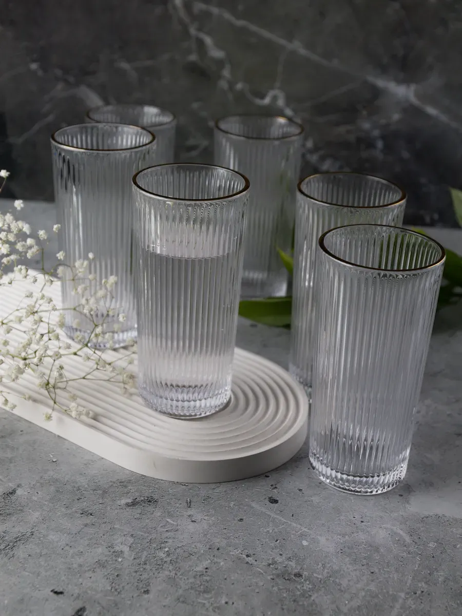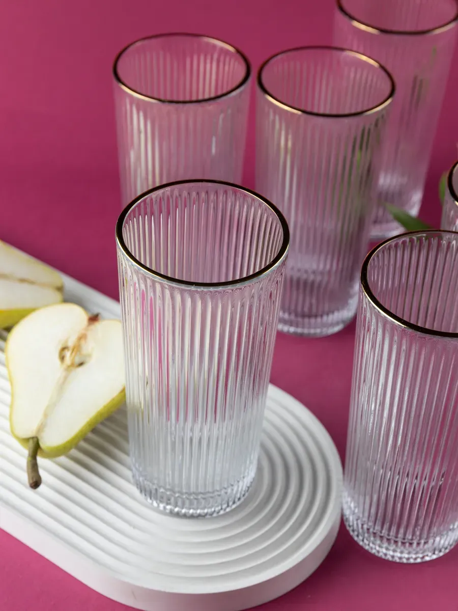Набор рифленных бокалов для сока с золотой каймой от бренда "Нерпочка" станет изысканным дополнением к любому домашнему бару. Их можно использовать как набор бокалов для пива. Этот элегантный комплект из шести стаканов объемом 330 мл, выполненных из высококачественного стекла, порадует вас своим утонченным дизайном и практичностью. Аккуратная ребристая поверхность бокалов не только придает им особый шарм, но и удобно ложится в руку. Золотая кайма по краю каждого бокала добавляет нотку роскоши и стиля, делая их идеальными для подачи не только виски, но и воды, сока или других напитков. Бокалы "Нерпочка" не впитывают запахи, что гарантирует чистоту вкуса ваших любимых напитков. Этот набор станет прекрасным подарком для ценителей качественной посуды и любителей уютных вечеров в кругу друзей.