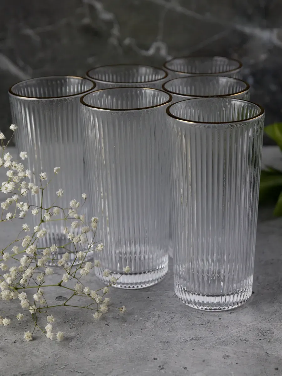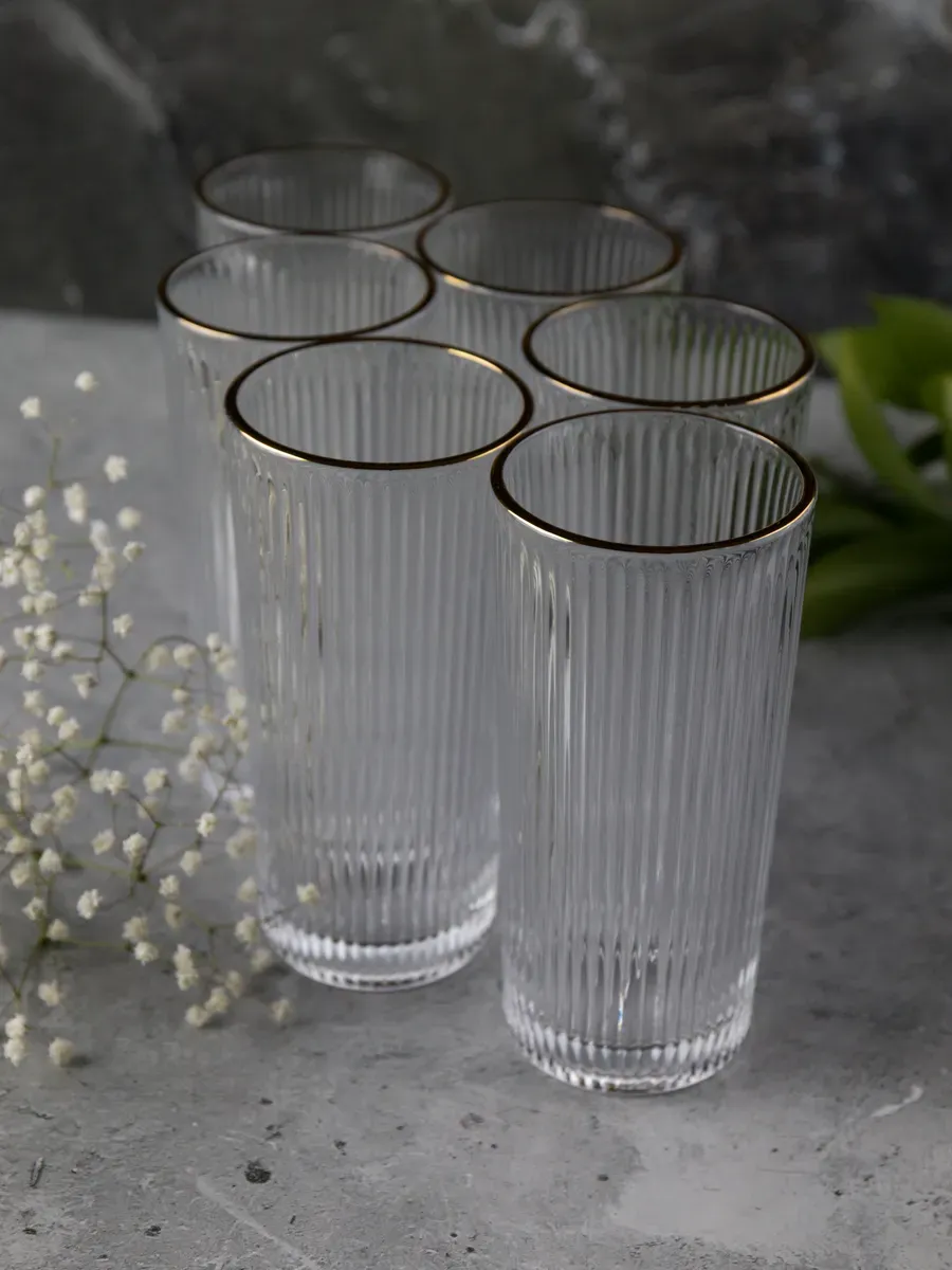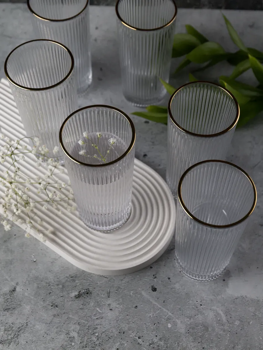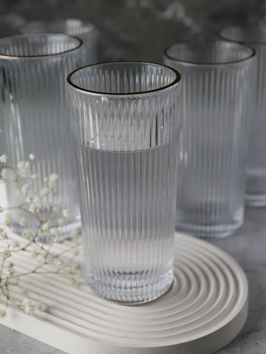 Набор рифленных бокалов для сока с золотой каймой от бренда "Нерпочка" станет изысканным дополнением к любому домашнему бару. Их можно использовать как набор бокалов для пива. Этот элегантный комплект из шести стаканов объемом 330 мл, выполненных из высококачественного стекла, порадует вас своим утонченным дизайном и практичностью. Аккуратная ребристая поверхность бокалов не только придает им особый шарм, но и удобно ложится в руку. Золотая кайма по краю каждого бокала добавляет нотку роскоши и стиля, делая их идеальными для подачи не только виски, но и воды, сока или других напитков. Бокалы "Нерпочка" не впитывают запахи, что гарантирует чистоту вкуса ваших любимых напитков. Этот набор станет прекрасным подарком для ценителей качественной посуды и любителей уютных вечеров в кругу друзей.