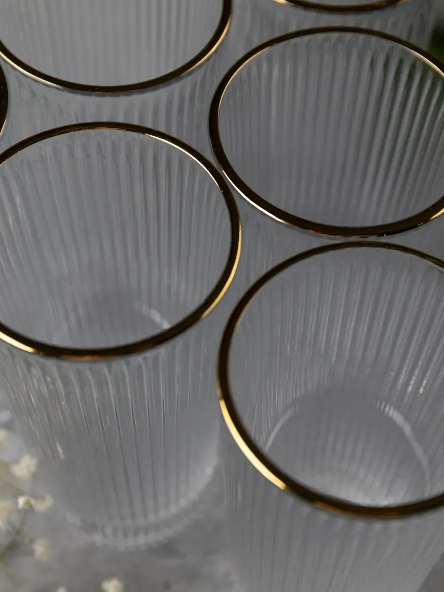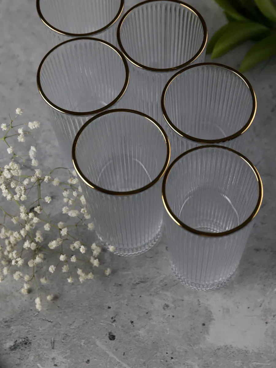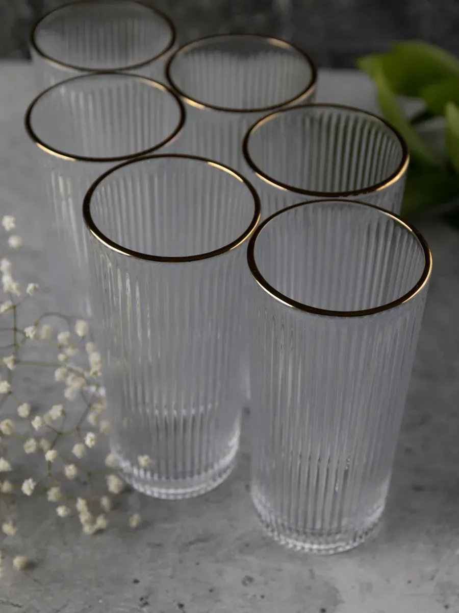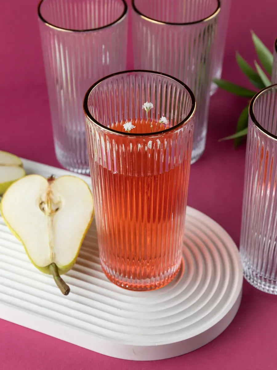 Набор рифленных бокалов для сока с золотой каймой от бренда "Нерпочка" станет изысканным дополнением к любому домашнему бару. Их можно использовать как набор бокалов для пива. Этот элегантный комплект из шести стаканов объемом 330 мл, выполненных из высококачественного стекла, порадует вас своим утонченным дизайном и практичностью. Аккуратная ребристая поверхность бокалов не только придает им особый шарм, но и удобно ложится в руку. Золотая кайма по краю каждого бокала добавляет нотку роскоши и стиля, делая их идеальными для подачи не только виски, но и воды, сока или других напитков. Бокалы "Нерпочка" не впитывают запахи, что гарантирует чистоту вкуса ваших любимых напитков. Этот набор станет прекрасным подарком для ценителей качественной посуды и любителей уютных вечеров в кругу друзей.