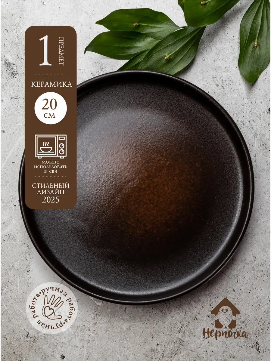 Каждая тарелка весом почти 1кг, беря ее в руки сразу ощущается дороговизна материалов и понимание за что такая стоимость тарелки. Тарелки из керамики это отличный подарок бабушке, эта Ресторанная посуда отлично сочетает в себе стиль и изысканный дизайн, максимальную функциональность и прекрасно впишутся в интерьер все для вашей кухни. Вы можете собрать набор посуды столовой добавив туда разных размерностей и разных видов керамическая посуда или фарфоровая посуда, так получится отличный сервиз для дома и кухни. Практически каждая тарелка имеет разные виды включая тарелку для пасты или по другому тарелки глубокие или для супа. Блюдо сервировочное керамика в данной расцветки смотрятся гораздо эффектнее, чем тарелки белые. Керамическая посуда бренда Нерпочка - это универсальная и функциональная не только тарелка с бортиками, или обеденные тарелки, но и идеальный подарок на новый год женщине. Эта посуда идеальна для подачи любых блюд и для сервировки стола. Можно мыть в посудомоечной машине и использовать в микро
