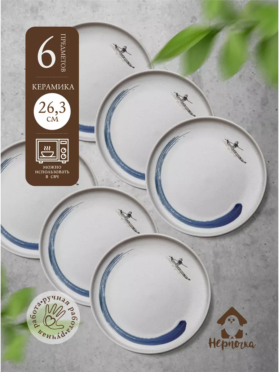 Набор тарелок из 6 штук.Тарелка ручной работы "Серфер" от бренда "Нерпочка". Желаем при каждом использовании тарелки с бортами, чтобы серфер напоминал вам, о свободе во всех ее проявлениях, что вы вс